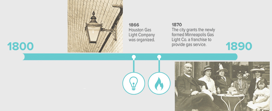 The city of Minneapolis granted the newly formed Minneapolis Gas Light Co. a franchise to provide gas service with gas manufactured from coal or oil at a plant along the Mississippi River.