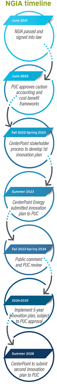 The projects are part of a five-year innovation plan submitted under a landmark state energy law: the Natural Gas Innovation Act (NGIA). Passed with bipartisan support, NGIA creates a new regulatory framework for natural gas utilities to invest in renewable energy resources and innovative technologies. CenterPoint is the first utility in Minnesota to file and have an innovation plan approved.​