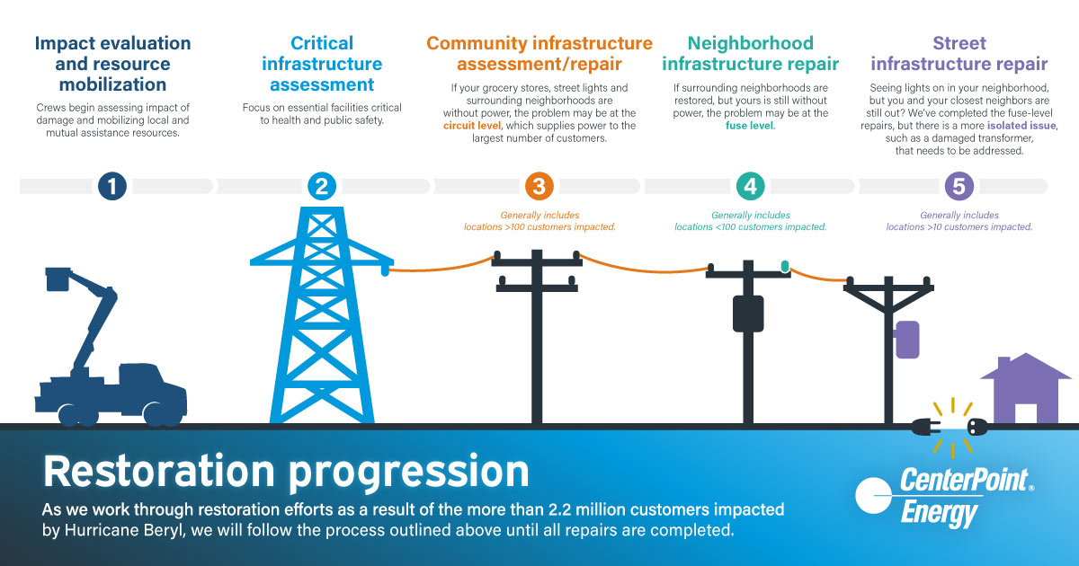 July 13, 2024 - 2:00 p.m. - CenterPoint Energy restores service to more than 1.6 million customers impacted by Hurricane Beryl