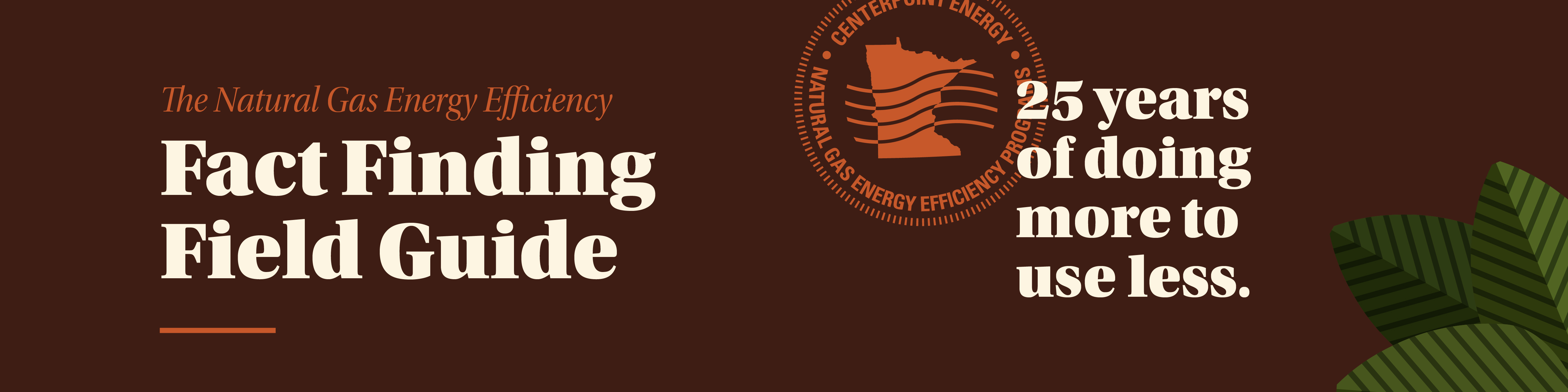 For the last 25 years, CenterPoint Energy has been providing natural gas energy efficiency programs that help Minnesota customers reduce their energy use. Explore the Fact Finding Guide to learn more about how together - we are all doing more to use less.